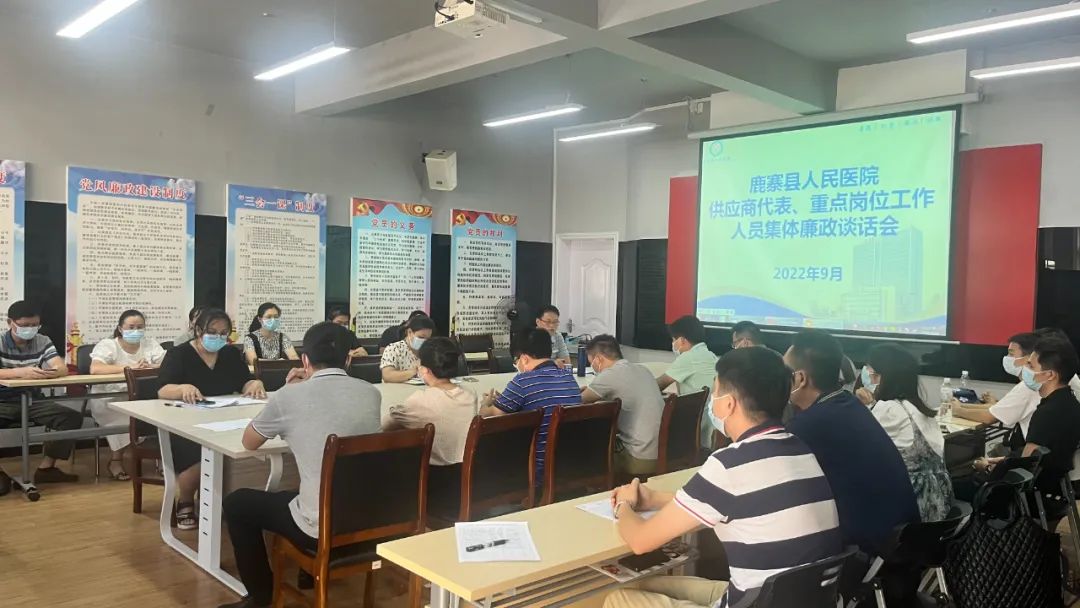 为全面推动清廉医院建设,根据自治区纠治医疗卫生领域腐败和作风问题专项行动以及清廉医院建设工作要求,9月26日,鹿寨县人民医院纪委组织22名供应商代表和18位重点岗位人员进行集体廉政谈话。