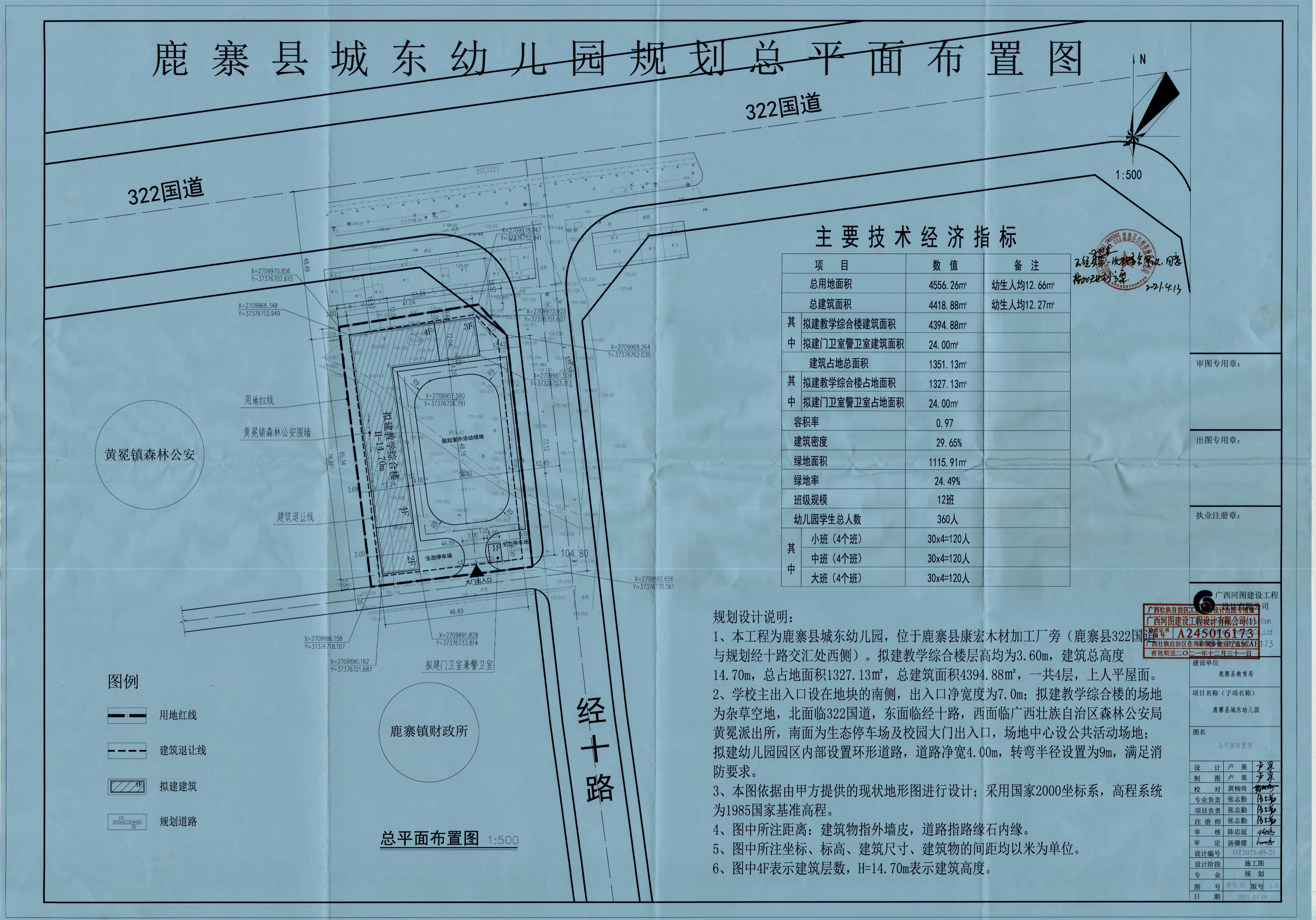【鹿寨县自然资源和规划局】“鹿寨县城东幼儿园”规划总平面图已于2021年4月13日经我局批准