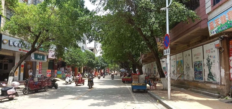 街道两旁的大树郁郁葱葱