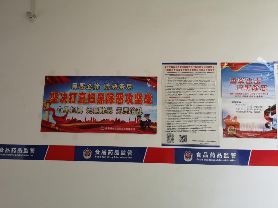 (图为平山食药监所内张贴扫黑除恶海报)