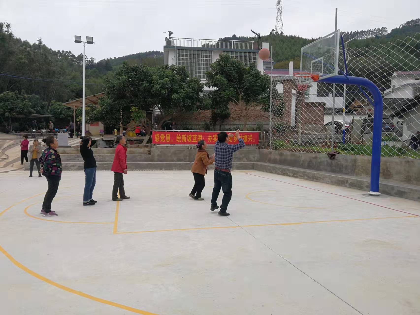 “以前这里是一片荒草地,到处可见垃圾,乱七八糟的,现在篮球场建好了,整个村子显得漂亮整洁多了,村民活动场所也有了。”村民指着篮球场说,“现在白天有孩子在这打篮球,晚上村民也喜欢出来这里活动,可热闹了。”