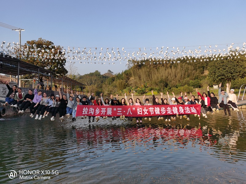 为庆祝“三·八”妇女节,丰富拉沟乡女干部职工业余文化生活,强健体魄、增强体质,3月8日,拉沟乡女干部职工到背塘村平山屯拉瓮沟开展庆“三·八”妇女节健步走活动。