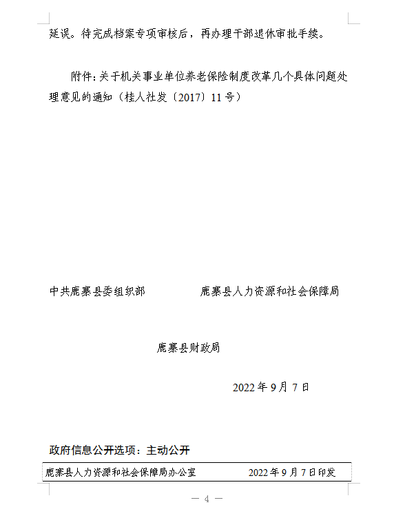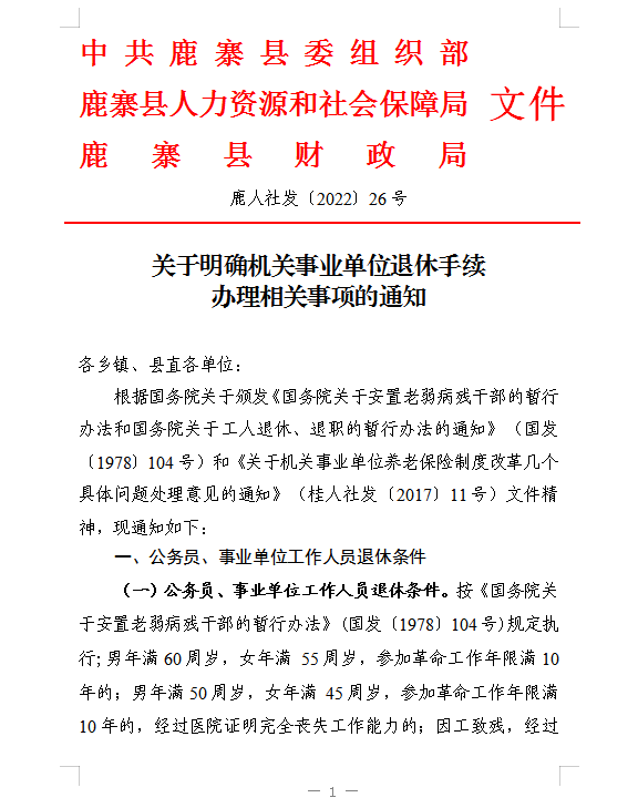 鹿人社发〔2022〕26号:关于明确机关事业单位办理退休相关手续有关事项的通知