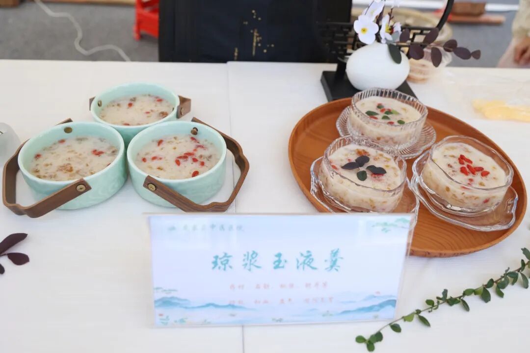 在集市药膳品鉴区,医院精心熬制的“金秋太极汤”“茯苓山药糕”“双润五花膳”“琼浆玉液羹”等滋补药膳香气四溢,吸引大量游客驻足品尝。每款药膳均标注药材配伍与功效,并由医务人员现场讲解“药食同源”的养生智慧,同时还有“中药奶茶”“生津润肺茶”等特色茶饮深受群众喜爱,让群众在舌尖上感受中医药“治未病”的魅力。