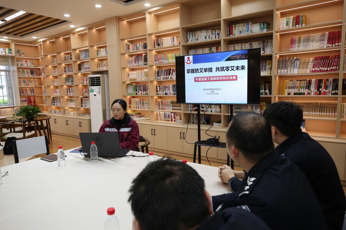 今年“12·1”是第38个世界艾滋病日,宣传主题为“社会共治 守正创新 终结艾滋”。11月24日上午,鹿寨县疾病预防控制中心相关工作人员走进广西壮族自治区中渡监狱(以下简称中渡监狱)开展主题为“党建融合强业务,共抗艾滋筑防线”的艾滋病防控知识讲座。参加讲座的人员有中渡监狱各党支部代表及青年管教警察代表,中渡监狱医院院长唐贞荣主持会议。