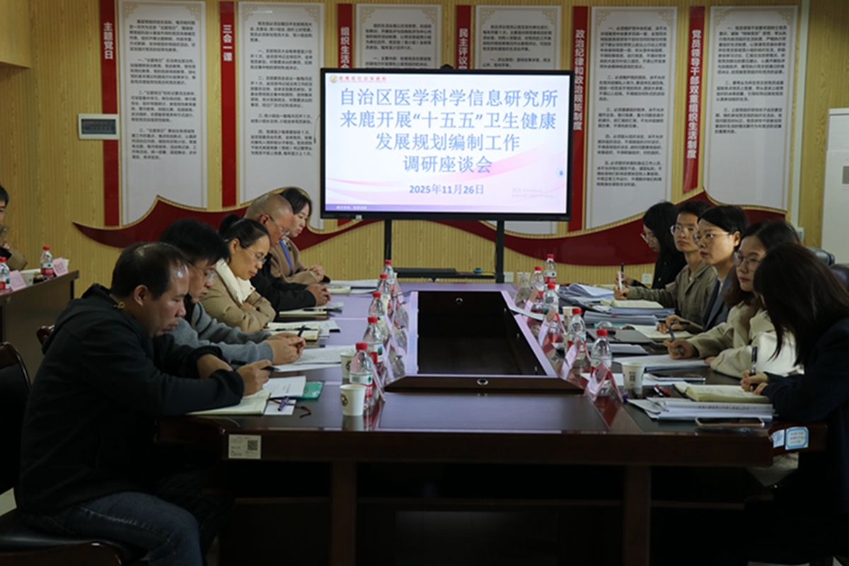 为科学编制“十五五”卫生健康事业发展规划,全面了解基层卫生健康工作实际,11月26日,自治区医学科学信息研究所的专家组到鹿寨开展“十五五”卫生健康事业发展规划调研。此次调研旨在深入了解鹿寨县卫生健康事业发展现状、存在问题以及未来发展需求,为编制贴合实际、具有前瞻性和可操作性的“十五五”卫生健康事业发展规划提供有力支撑。