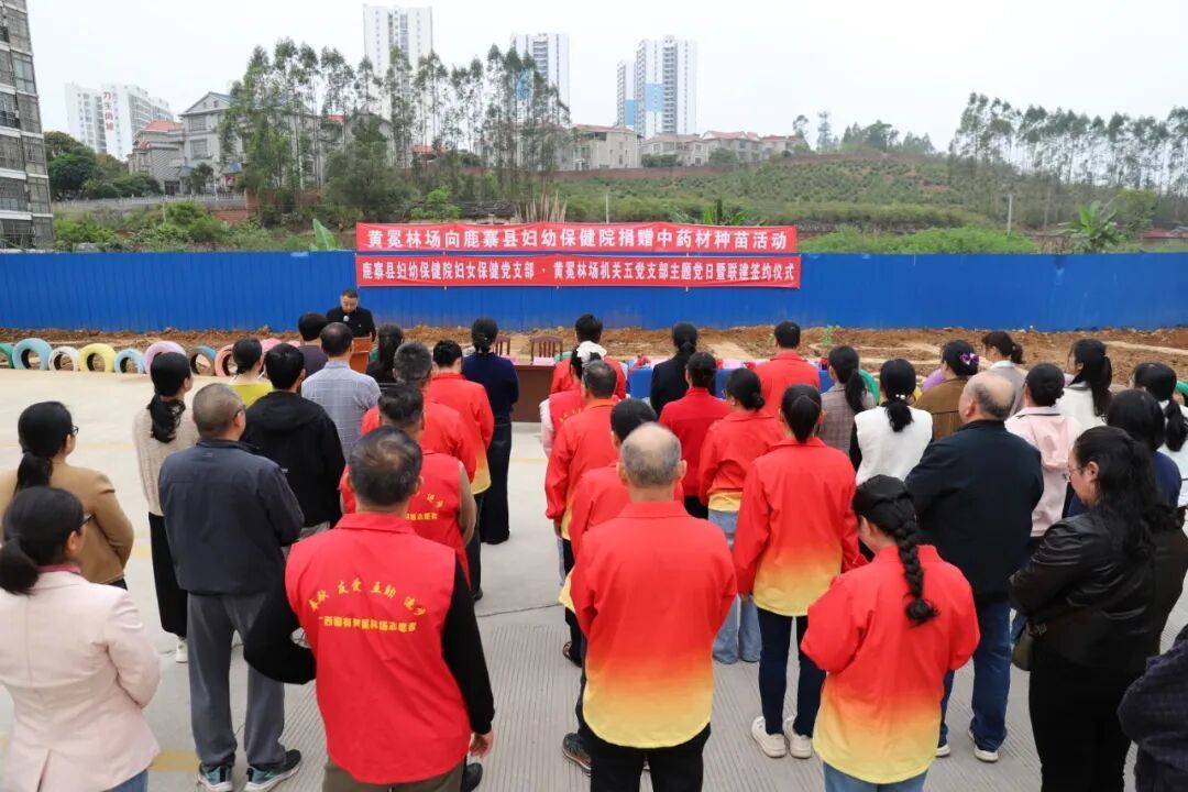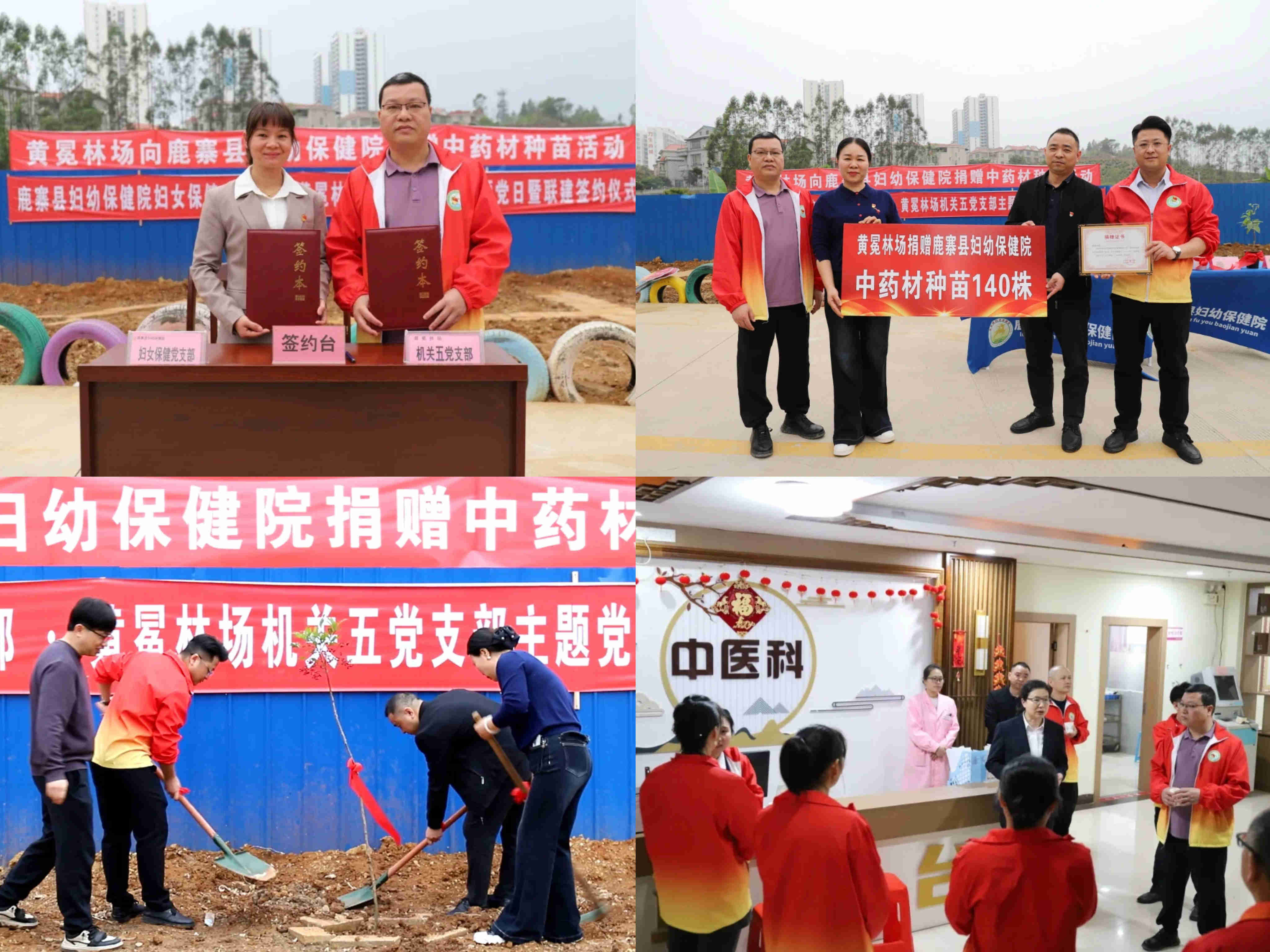 三月春风暖,植苗正当时。3 月 27 日,鹿寨县妇幼保健院与黄冕林场在院内中医药药用植物科普种植园,开展“林医携手共植药香,党建联建守护健康”中药材种苗捐赠活动及支部联建暨签约仪式,以中医药文化为纽带,共护妇女儿童健康。鹿寨县妇幼、黄冕林场领导及党员代表、团员代表参加活动。