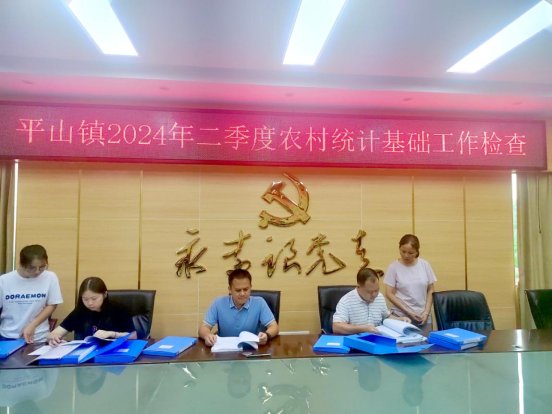 (图1 核查组在平山镇人民政府检查农村统计台账)