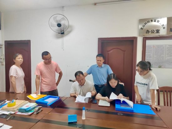 (图2 核查组在平山镇芝山村检查农村统计台账)