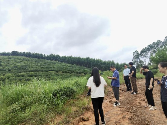 (图8 实地调研鹿寨镇思贤村岭背屯龙卧岭茶场生产情况)