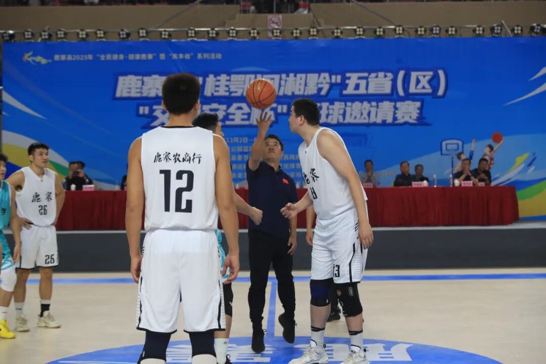 12月2日“全国交通安全日”当晚,鹿寨体育公园篮球馆内灯火璀璨、人声鼎沸,鹿寨县2025年“全民健身·健康鹿寨”暨“庆丰收”系列活动之鹿寨县“桂鄂闽湘黔”五省(区)“交通安全杯”篮球邀请赛、鹿寨县“一鹿同行·交通安全杯”足球邀请赛在此盛大开幕。杨毅、覃宝花、陈需勤、朱燕文等县四家班子领导与来自五省(区)的运动健儿、嘉宾及市民代表齐聚一堂,共同见证这场文体融合、区域联动的体育盛宴。