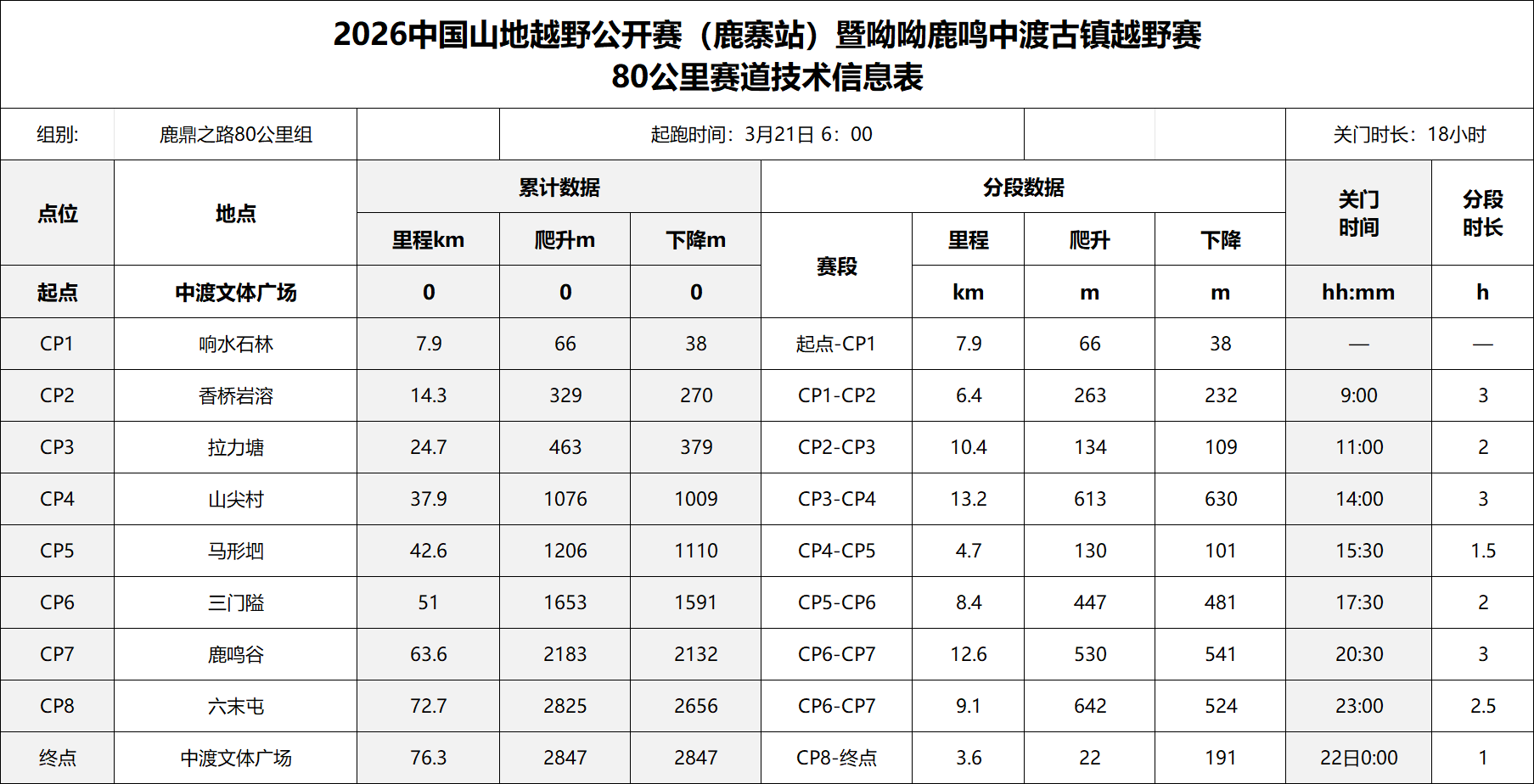 80公里全程8个补给站