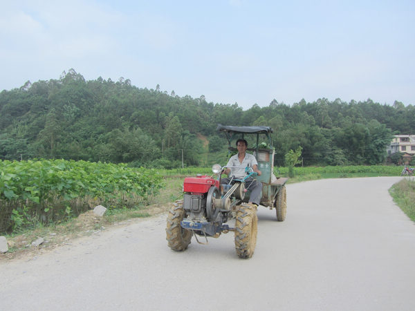 图为土地整治使村里的路宽敞了,村民开着“小金牛”把新鲜的桑叶往家里运送。