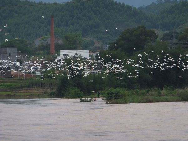 在浅滩上,悠闲漫步的白鹭或啄食、或伫立、或嬉戏,描绘了一幅鸟与大自然和谐统一的美丽景观。当察觉到有人靠近,几只近距离的白鹭立即挥翅展飞,随后,所有的白鹭纷纷飞翔起来,在碧水蓝天间画出一道美丽的风景线。 据了解,白鹭成群而来,与该镇良好的自然环境密不可分,这也充分体现了清洁乡村工作落到了实处,使生态环境变好了。同时,附近村民对白鹭的自觉保护,为白鹭提供了一个安全的栖息之地,也让这些白鹭生活得恬然自在。(通讯员韦雁芳)图为白鹭展翅飞翔。