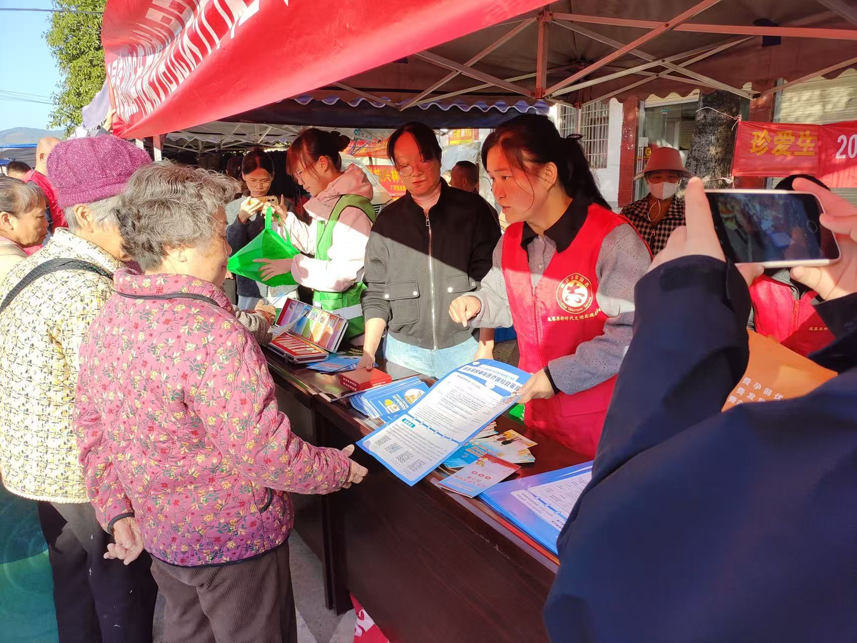 ▲在集镇摆摊宣传医保政策