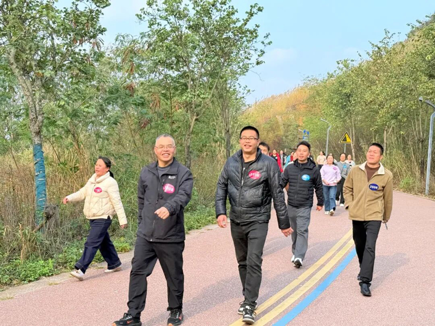 活动将职工随机组建为12支队伍,以团队最后一名队员达到终点时间排位决胜,充分考验协作力与凝聚力。在现场,职工们身着运动装束、严守规则,步履矫健、精神饱满,相互鼓劲、携手前行,沿途展现着奋进活力,成为公园中一道靓丽的风景线。