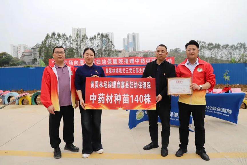 捐赠药苗,筑牢健康根基。签约后,黄冕林场向鹿寨县妇幼保健院捐赠三叉苦、牛大力、黄栀子等6种特色中医材种苗140株,并现场讲解苗木特性、药用价值与养护要点,为该院在中医药科普与健康服务方面提供优质资源。