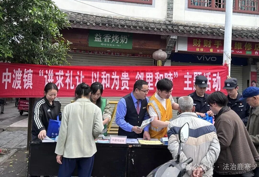 法治护航,平安清明。4月3日,中渡镇综治中心、中渡司法所、中渡派出所等部门联合,在该镇九龙市场开展清明专题普法活动。