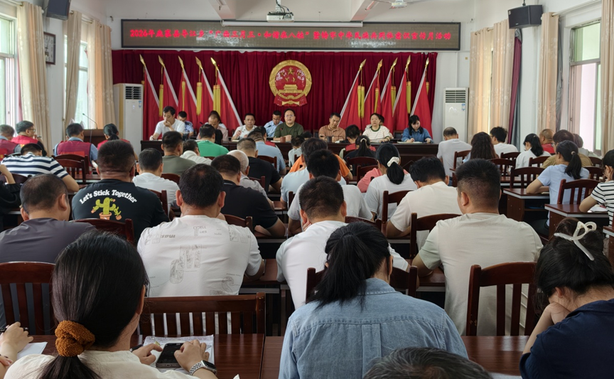 4月13日,导江乡开展2026年鹿寨县“广西三月三·和谐在八桂”暨铸牢中华民族共同体意识宣传月活动,组织100多名各族党员干部深入学习《中华人民共和国民族团结进步促进法》等民族政策和法律法规。