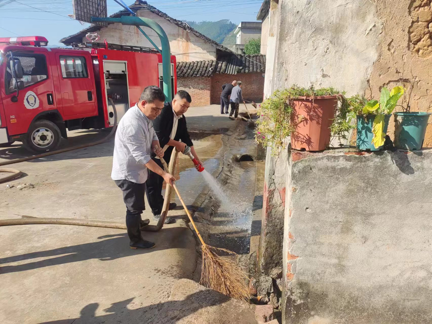 在环境卫生整治行动中,全镇11个行政村积极行动,一是组成由包村领导带队、全体村干带头、党员群众志愿者齐参与的整治队伍,深入到各个村屯,进行全面的环境卫生整治工作,包括垃圾分类清理、路面清扫以及污水沟清洁等;二是黄冕镇应急服务中心组织了一支突击队,利用消防车对村里的臭水沟、下水道进行冲洗,有效地清除水沟内积累的污染物,防止黑臭水体的产生。