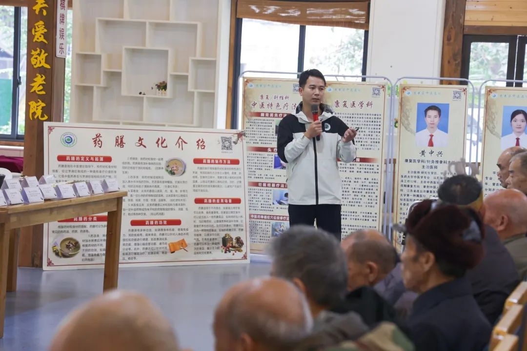 在活动中,鹿寨县中医医院康复医学科主任黄中兴举办了题为《药膳养生与常见老年病的中医康复疗法》的科普讲座,跟大家分享了药膳文化的知识、药膳的搭配和功效,并重点介绍了当季养生在起居、药补、饮食等方面的特点,以及不同体质的药膳调理方法。