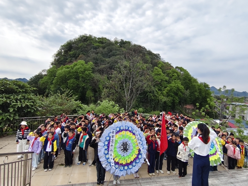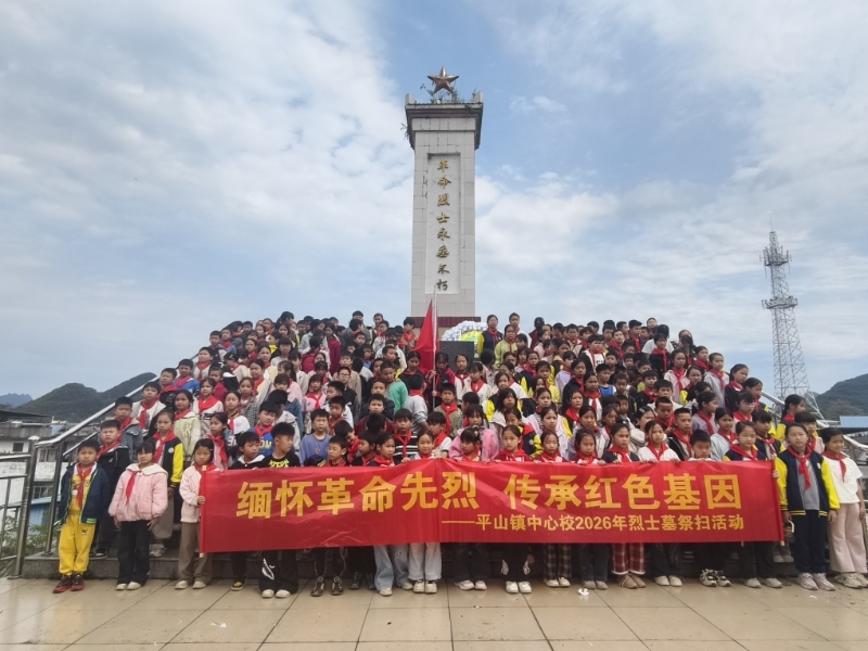 4月1日上午,平山镇中心校组织四年级全体师生到平山镇烈士陵园,开展2026年“缅怀革命先烈,传承红色基因”烈士墓祭扫活动。仪式庄重有序,全体师生肃立,依次完成出旗、奏唱国歌、献唱队歌等环节。校长现场寄语,队员们认真学习烈士事迹,敬献小白花、行三鞠躬礼,重温入队誓词并庄严呼号,以实际行动缅怀先烈、致敬忠魂。此次活动厚植了少先队员的爱国情怀,激励大家传承红色基因,立志从小学先锋、长大做先锋,努力成长为担当民族复兴大任的时代新人。