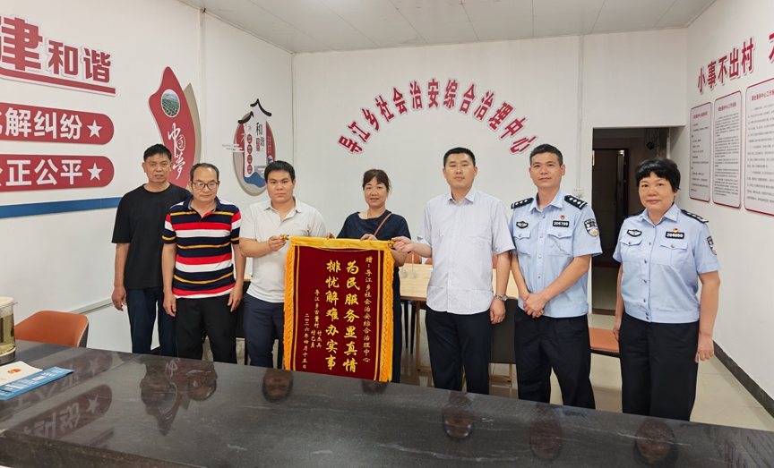 “一面锦旗,不仅是群众对综治中心工作的认可,更是一份沉甸甸的责任与信任。这次多部门联动解决了十几年的土地纠纷。为综治中心、派出所、司法所、村建中心、农业服务中心、古懂村委会点赞!”该乡政法委员、武装部部长苏省接过锦旗后欣喜不已。4月15日,为感谢乡综治中心及各部门工作人员一心为民、倾力解忧,当事人专程送来锦旗,以最真挚的方式表达感激之情。这一面锦旗,不仅是对工作人员工作成效的肯定,更是基层矛盾纠纷化解工作深得民心的生动体现。