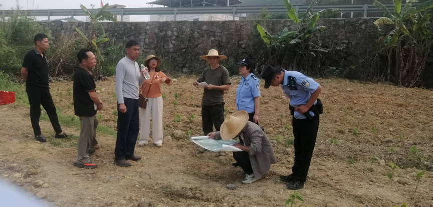 调解当天,联合工作组深入争议地块现场,开展实地勘察、精准测绘,逐一厘清地块四至界线,明确权属边界,为纠纷调解提供专业、客观的依据。在调解过程中,各部门各司其职、协同发力:乡综治中心全程统筹协调,把控调解节奏,聚焦矛盾核心推进协商;司法所立足法律层面,细致讲解土地管理相关法律法规,为当事人答疑解惑,引导其依法理性维权;派出所全力维护现场秩序,保障调解工作平稳推进;村建中心、农业服务中心发挥专业技术优势,做好地块测绘、权属认定工作;古懂村民委依托基层工作优势,从亲情角度出发,耐心沟通劝解,拉近兄妹三人情感距离。