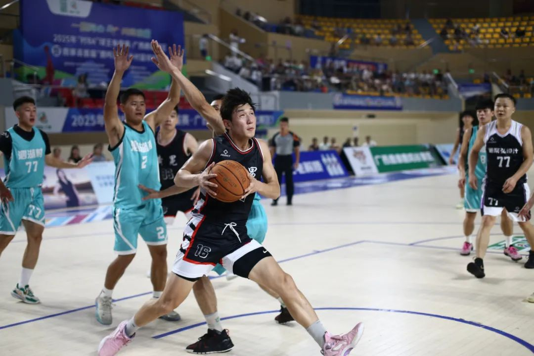 而最受瞩目的是冠军争夺赛,由鹿寨镇人民政府队与四排马龙队展开对决。篮球在球员之间快速传递,攻守转换瞬息万变,运球、传接、投篮,每一个动作都精准而有力,紧紧牵动着场外观众的心。现场赛事解说员与热情的球迷助威团呐喊声此起彼伏,将赛场氛围推向高潮。