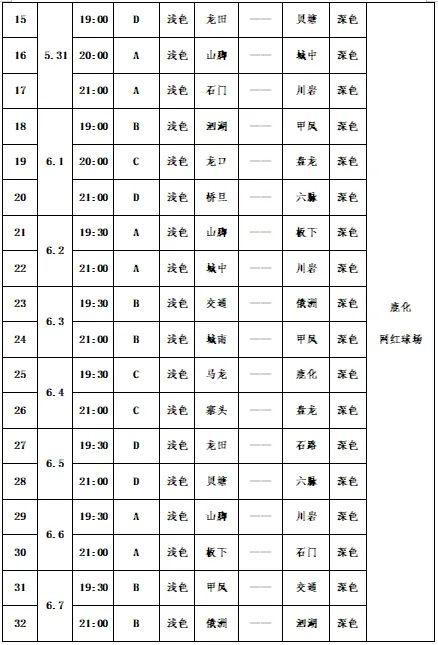 赛程表抢先看