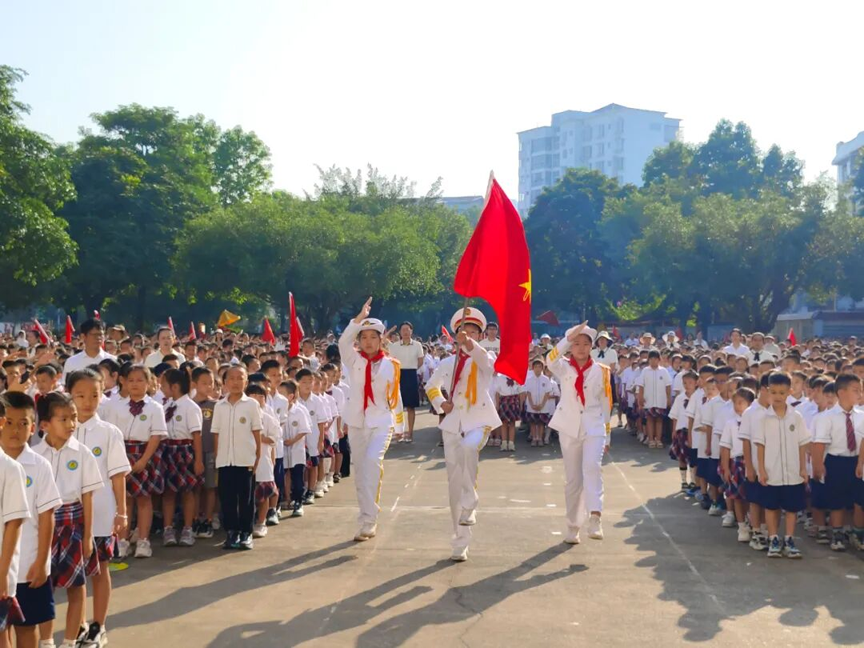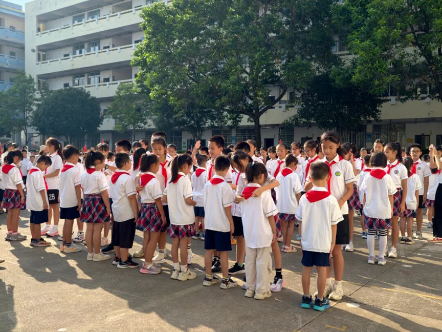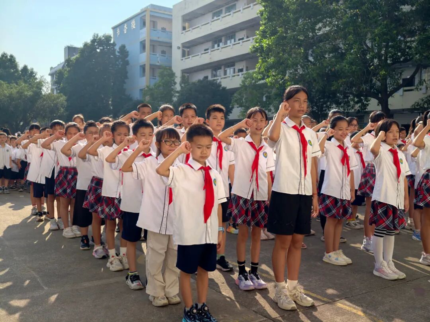 在大队辅导员的带领下,全体少先队员高举右拳庄严呼号,嘹亮誓言回荡校园,凝聚起“争当新时代好少年”的坚定信念。