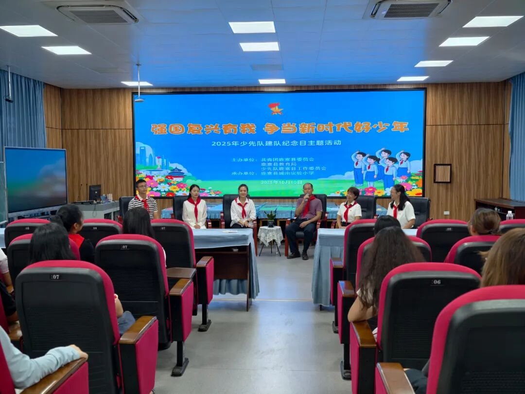 10月10日,鹿寨县城南实验小学内队旗飘扬、歌声嘹亮,县少工委在此开展“强国复兴有我 争当新时代好少年”2025年少先队建队纪念日主题活动,县直各中小学及各乡镇中心校大、中队辅导员代表与城南实验小学师生共同参与,以庄重仪式传承红色基因,以深度交流共促少先队事业发展。