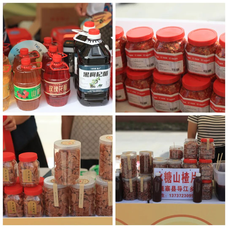 与此同时,“农市大集”也人头攒动,气氛“火爆”。各个摊位上山楂果、山楂青果酒、山楂干、五黑蛋、腐竹、野生蜂蜜、油粘米等特色农产品琳琅满目,令人目不暇接。游客们边品尝、边选购,纷纷为家人朋友捎去一份份独具风味的“乡土礼物”。“农市大集”通过现场零售、批量采购及线上直播等多种渠道,有效拓宽了农产品销路。