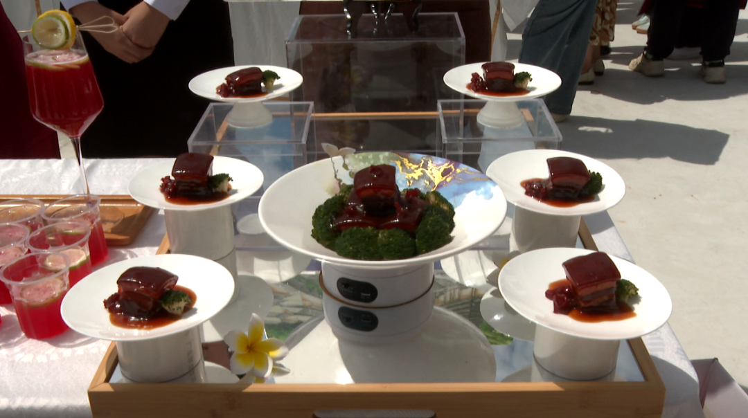 最令人期待的山楂特色美食比拼环节,各位参赛选手大显身手,匠心独运地以山楂为主要食材,创作出冰皮山楂月饼、红果双味猪脚、和牛芋见山楂塔塔船、酸奶山楂冻等一道道创意十足、名称诱人的佳肴,令评委和观众赞叹不已。”