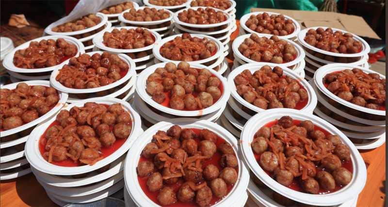 时近中午,独具特色的山楂宴正式“登场”。山楂汁五柳鱼、山楂汁肉丸、糖煮山楂果、蜜汁山楂排骨……一道道色香味俱全且蕴含美好寓意的菜肴,不仅满足了味蕾,更将山楂文化深度融入饮食体验,为当地群众和远方游客献上了一场充满烟火气与文化韵味的美食盛宴。