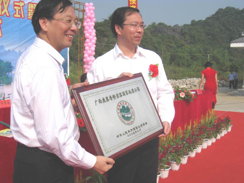 国土资源部、自治区领导及市、县领导还共同为香桥岩溶国家地质公园剪彩并揭碑。