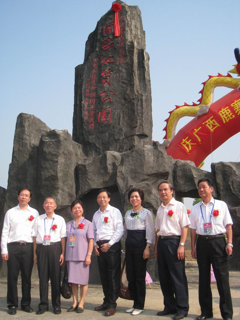 图(3)国土资源部、区、市(县)领导在香桥岩溶国家地质公园碑林前合影留念。