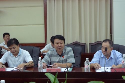 图为市教育局副局长程卓(中)对我县职教攻坚工作提出建议。