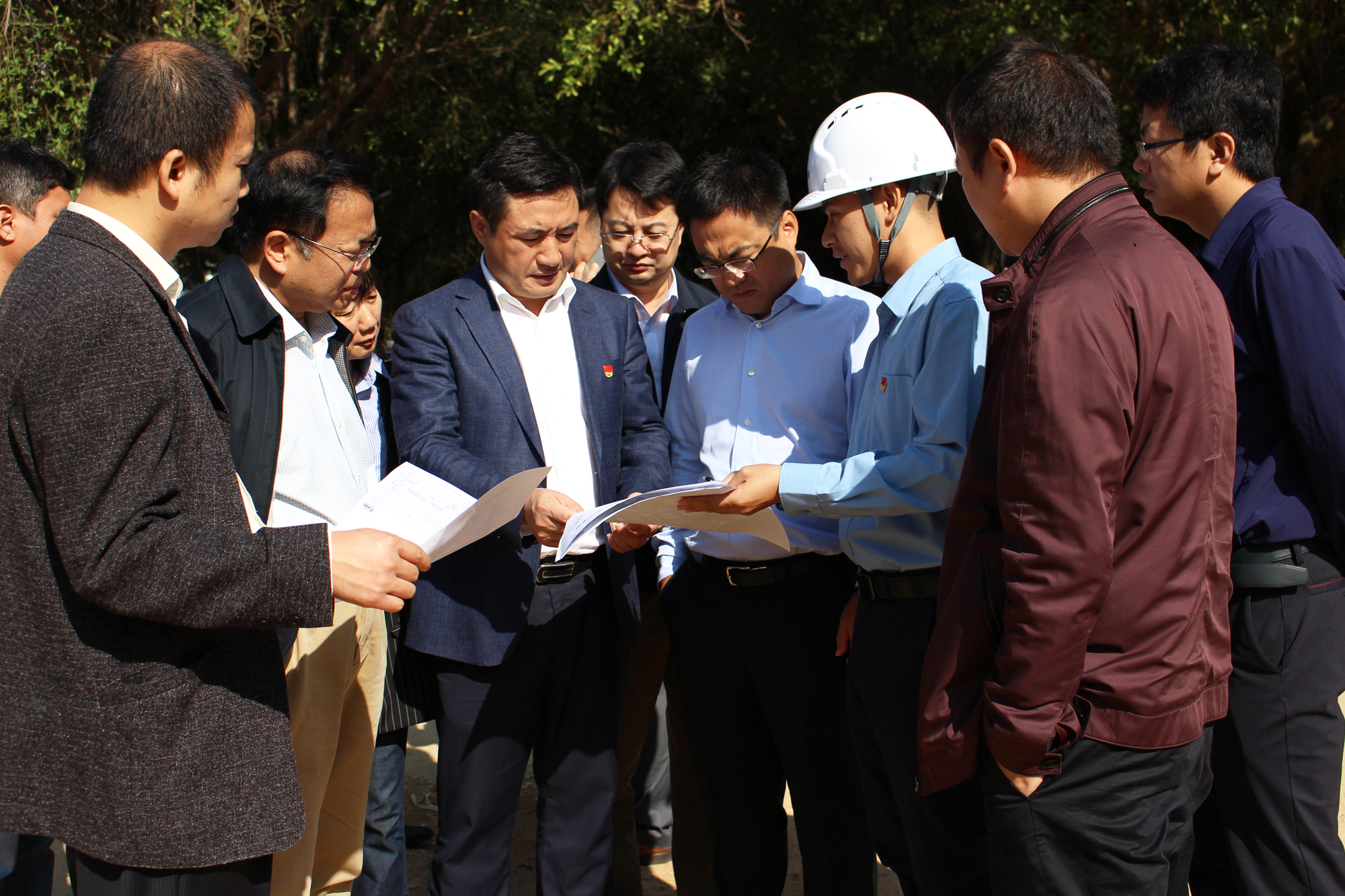 图为石墨烯项目考察团在我县中小企业孵化基地调研。