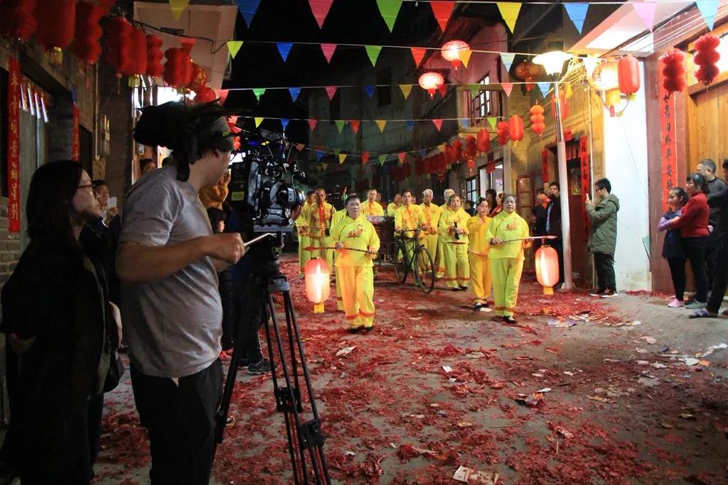 2月6日正月初二,在鹿寨中渡、平山等乡镇拍摄了已近一个月的栏目组赶往他们的下一个拍摄点寨沙镇,拍摄寨沙的民俗活动——过街溜。