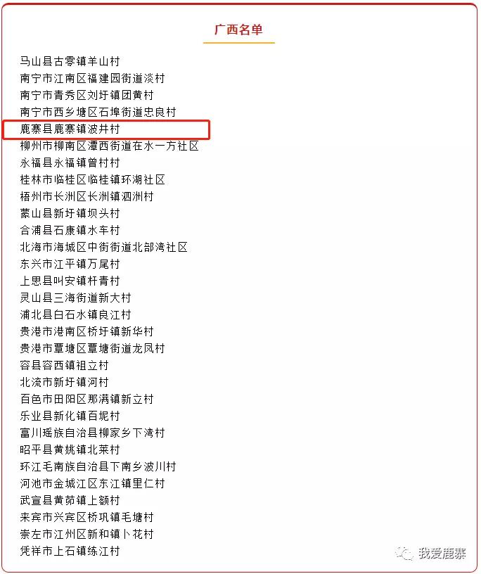 近日,司法部、民政部印发通知,决定命名1045个村(社区)为第八批“全国民主法治示范村(社区)”。其中,广西30个村(社区)上榜,鹿寨县鹿寨镇波井村榜上有名!