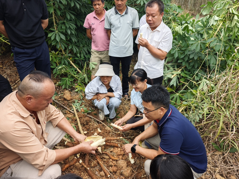 理论课结束后,专家还深入木薯种植地块开展实地教学,结合木薯长势对中后期管理要点进行补充指导,并通过现场挖取样本,直观分析种植密度与根系发育情况,就如何进一步提升木薯单产和品质提出具体建议。