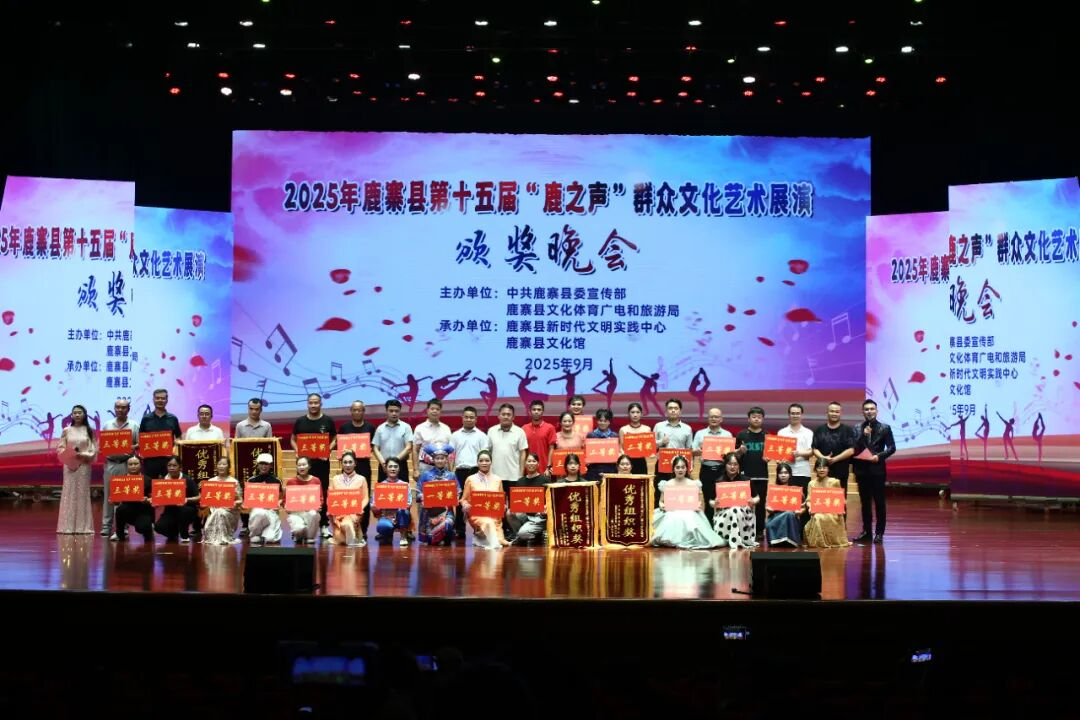 9月28日晚,为期3天的2025年鹿寨县第十五届“鹿之声”群众文化艺术展演颁奖晚会,在县文化艺术中心大剧院圆满落幕。一个个精彩纷呈的节目,绽放着无穷的激情与活力,表达了鹿寨人民对党对祖国对家乡的无比热爱之情。