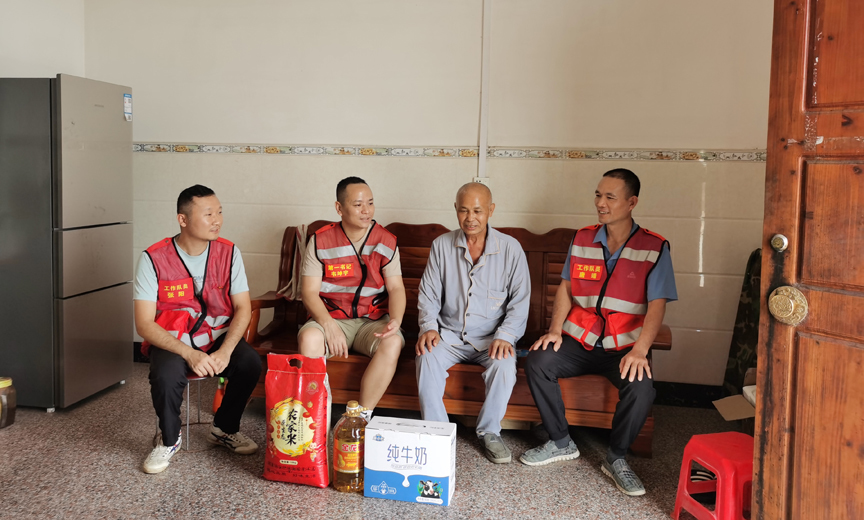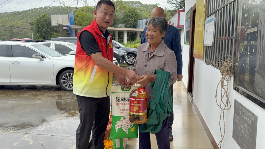 近日,鹿寨县黄冕镇石门村驻村工作队积极对接爱心企业与公益组织,筹得0.6万元爱心资金,购置食用油、大米等生活必需品,于国庆、中秋双节来临之际分批走访慰问16户特困户、12户脱贫户,将党的温暖和关怀送到他们的心坎上。