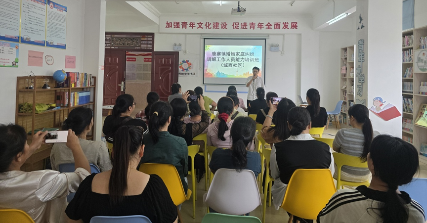 为进一步提升基层妇联干部调解婚姻家庭纠纷的专业能力,有效预防和化解家庭矛盾,9月25日,鹿寨县鹿寨镇妇联在城西社区组织举办婚姻家庭纠纷调解专题培训班,各行政村(社区)妇联主席、优秀女干部等27名学员参加培训。