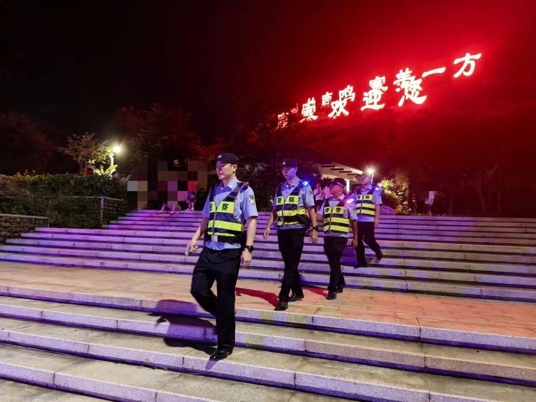 国庆中秋双节期间,鹿寨警方加大对重点场所、重点区域的巡查力度,深入宾馆、棋牌室等场所开展检查,详细核查人员信息,督促场所落实安全管理责任;对奶茶店、电竞馆、台球室等休闲娱乐场所进行走访,排查安全隐患,确保场所经营规范、秩序良好。同时,加强夜间街面巡逻,民警们身着反光背心,在繁华街区、景区周边开展步巡,闪烁的警灯成为夜晚最安心的守护。