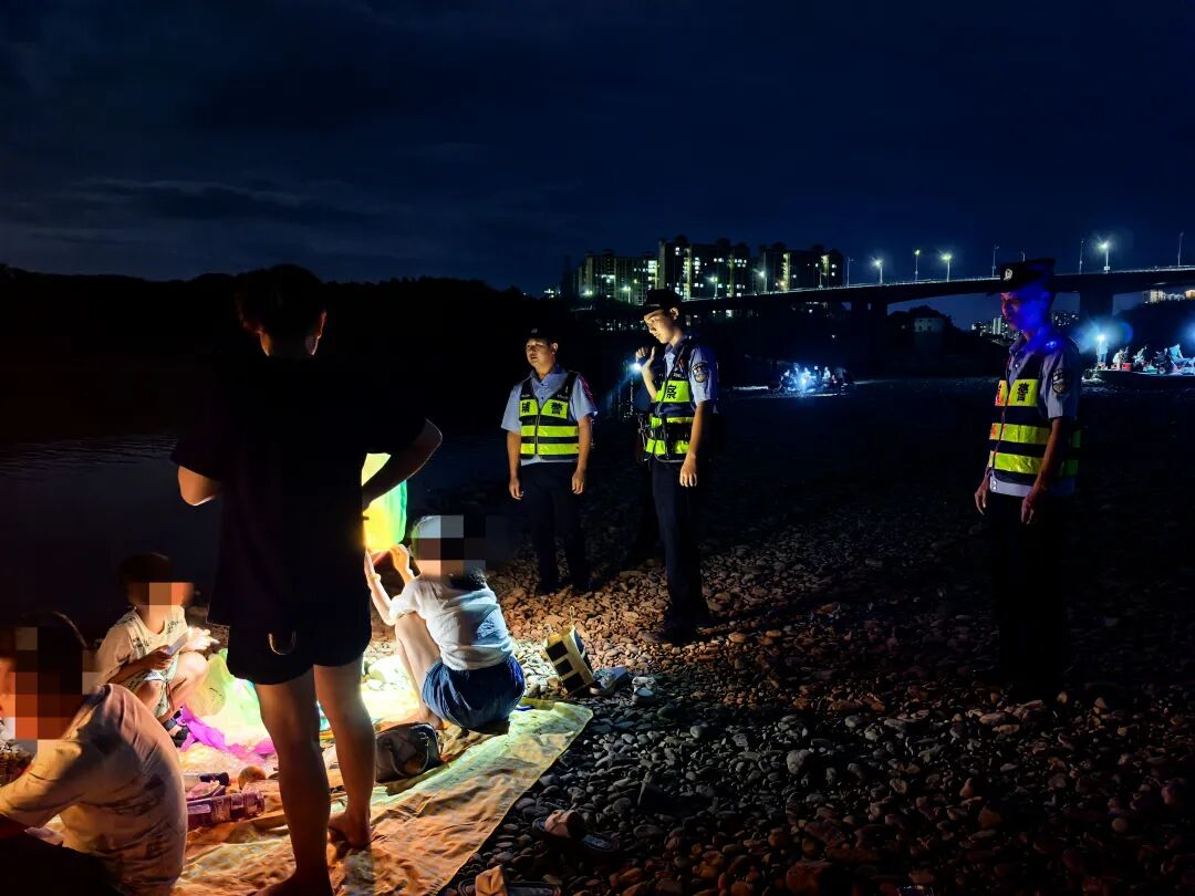 针对节日期间群众户外活动增多的情况,鹿寨警方在江边等休闲区域加强巡逻值守,民警们手持警灯,时刻关注群众动态,及时提醒安全注意事项,守护群众度过欢乐时光。(来源:鹿寨警方)