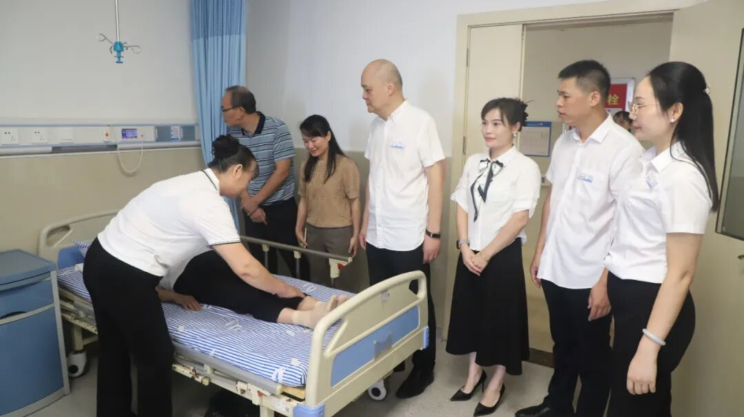 仪式现场,与会领导、嘉宾共同为医院“无陪护”示范病房揭牌,并实地参观医院“无陪护”病房建设,深入了解医疗护理员队伍建设情况。