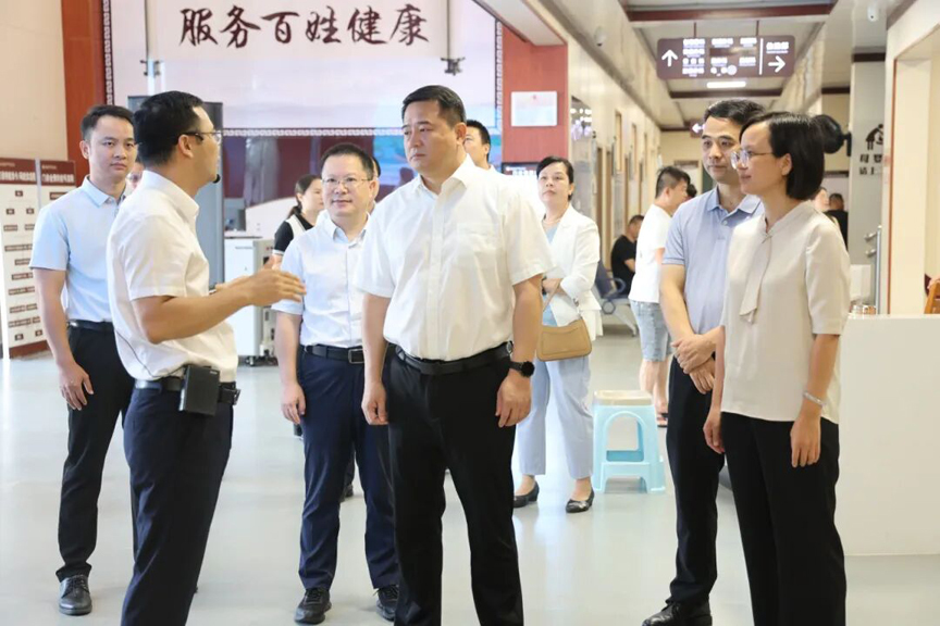 调研组一行走访了鹿寨县中医医院门诊大厅、名医馆、介入导管室、治未病科、脊柱骨病科、中医药文化园等重点区域,深入了解该院的中医药特色与优势,听取了该院相关情况汇报。汤振国对该院卫生健康各项工作取得的成果表示肯定。他指出,鹿寨县中医医院作为全市县域内首家“三级甲等中医医院”,要立足新起点,坚持以人民健康为中心,持续提升中医药服务能力与水平。
