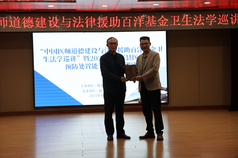 讲座尾声,孙教授将其所著的《〈民法典〉(医疗损害责任)立法学习与临床应用》分别赠予鹿寨县卫生健康局和鹿寨县中医医院,为我县医疗行业学法用法提供参考资料。